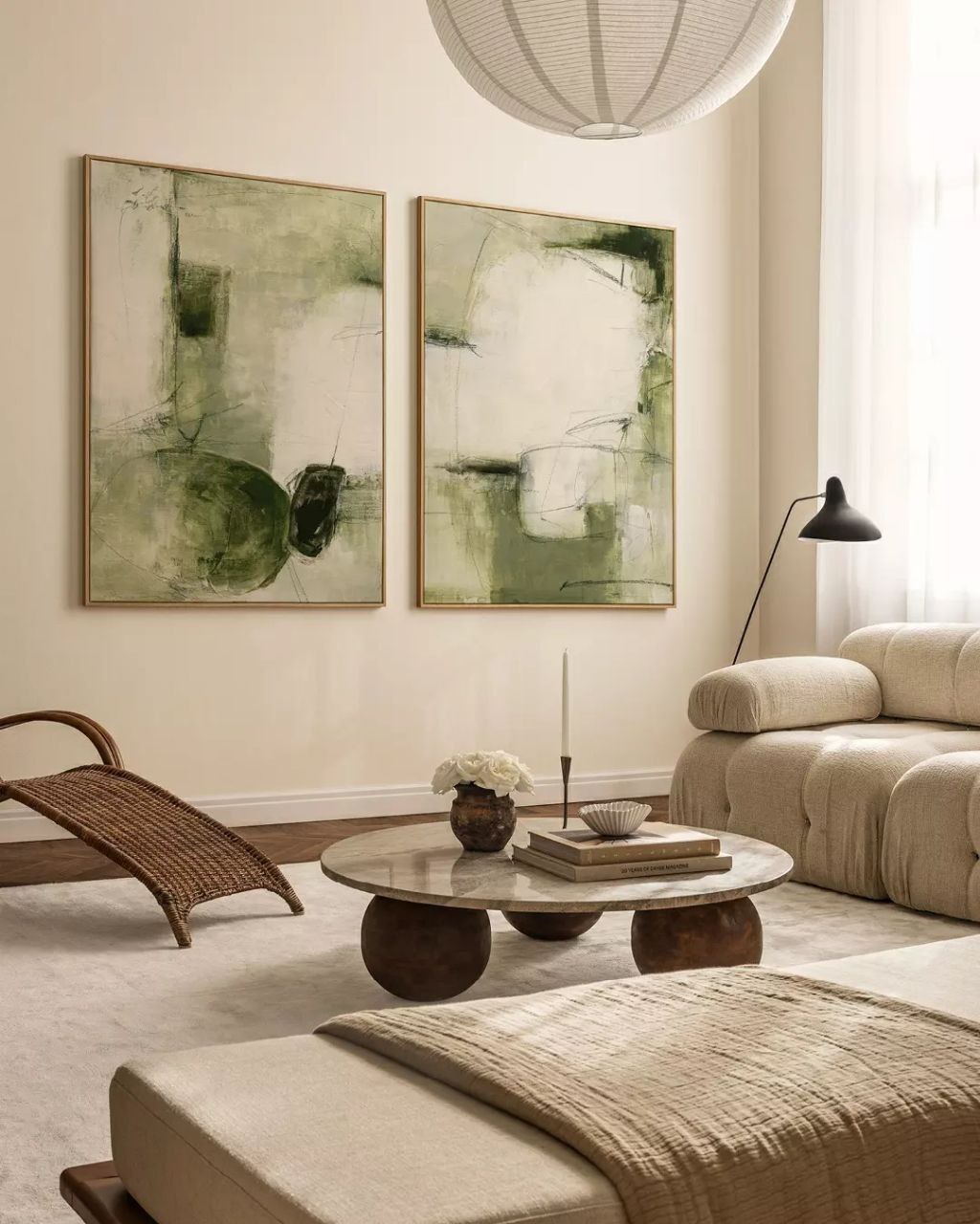 - مبلمان ساده + تابلو پرجزئیات: تعادل بصری برقرار کنید.